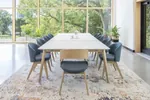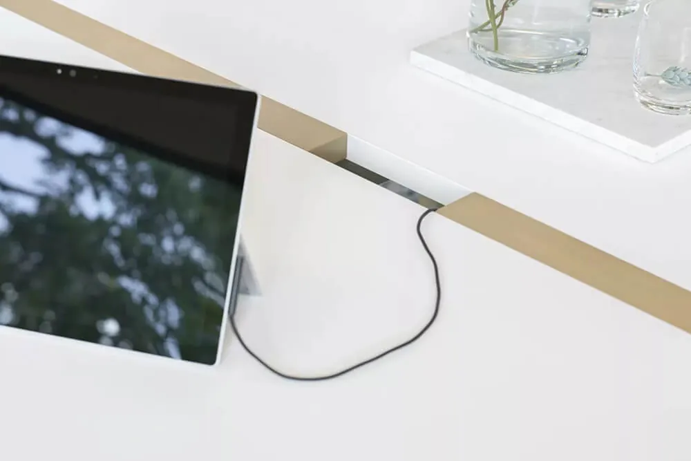 This wooden conference table with tapered legs comes standard in a high-end Chalk white finish table top with light Sand wood legs, and frame and outlets in Dusk grey. However, if you like to have it in other finishes, you can check the available ones by clicking HERE.