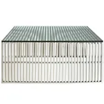 Our Grid stainless steel coffee table offers a captivating blend of modern design and industrial elegance. Constructed from a tubular stainless steel grid, this coffee table features a sleek glass top that enhances its contemporary aesthetic.