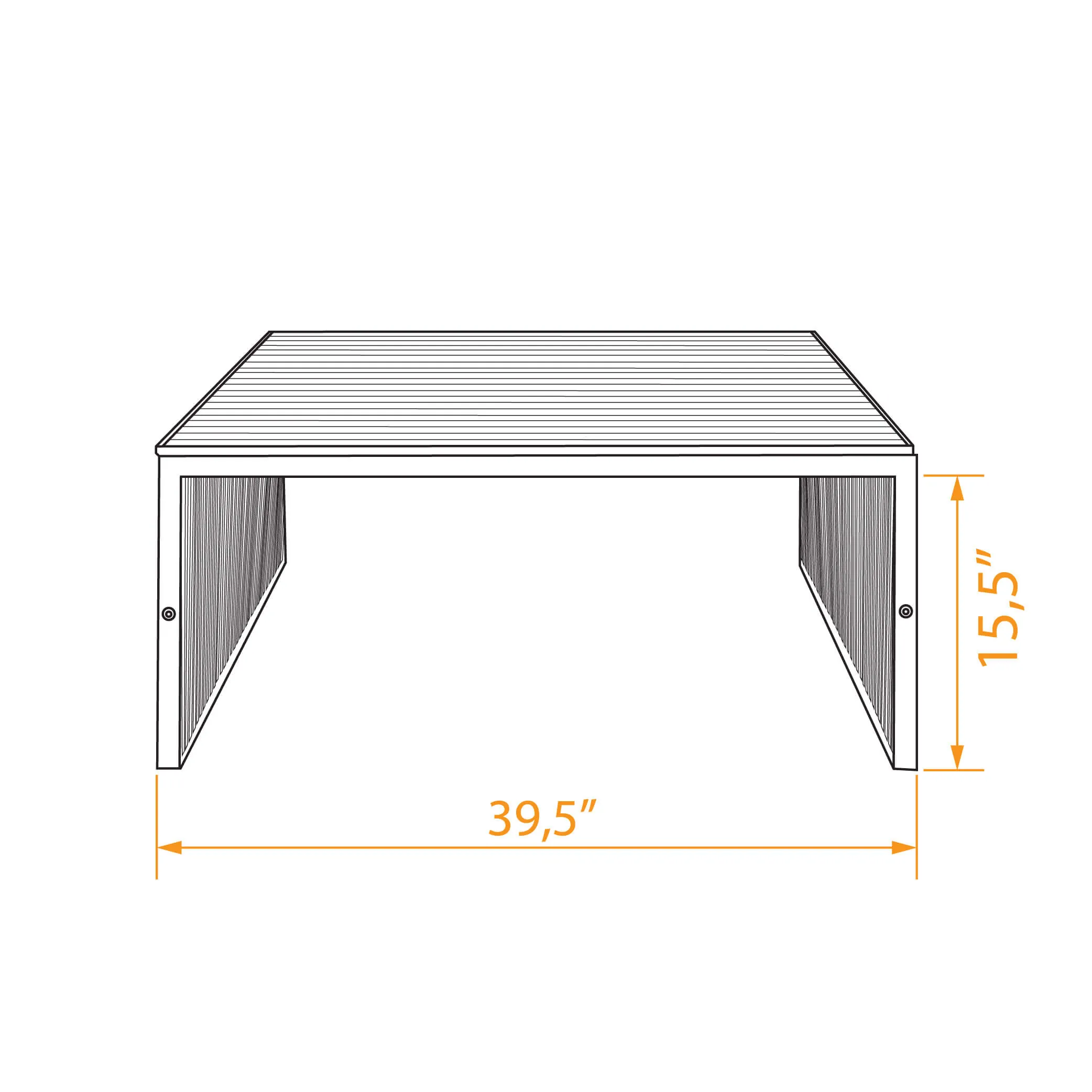 The straight lines and linear components are seamlessly integrated to create a cutting-edge appeal with minimalist effect. Perfect for both open office environments and executive private office suites, this steel coffee table adds a touch of refined style while maintaining functionality and durability.