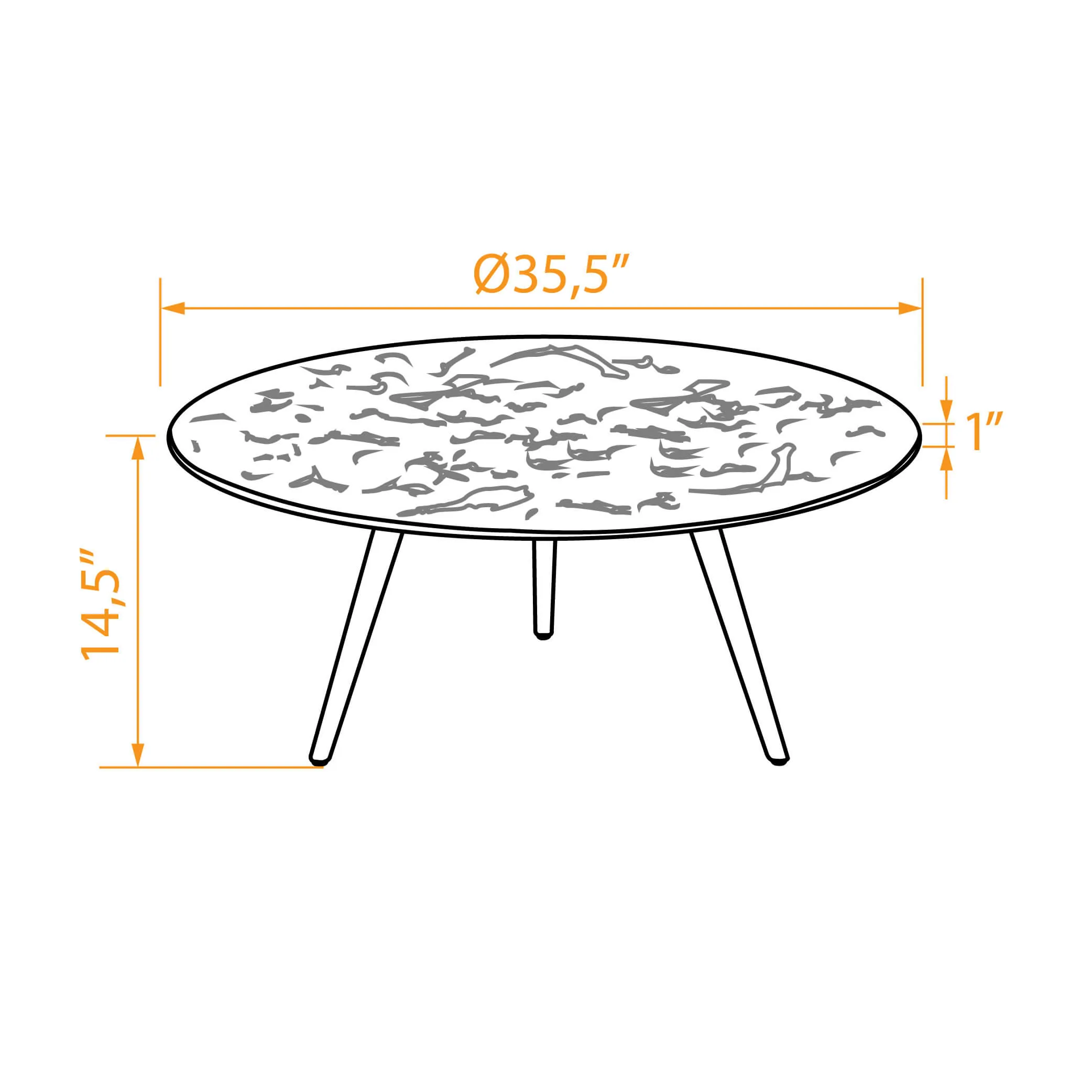 1” Thick scratch-resistant artificial marble coffee table top.