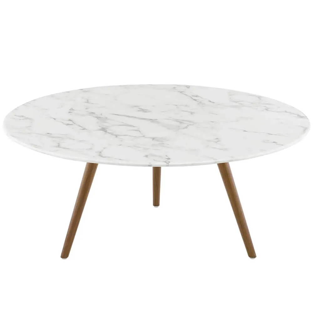 Enhance your office space with our marble coffee table gold legs feature, a perfect blend of modernism and timeless elegance. This faux marble coffee table top, featuring a round shape, embodies a seamless organic design and an enduring form.
