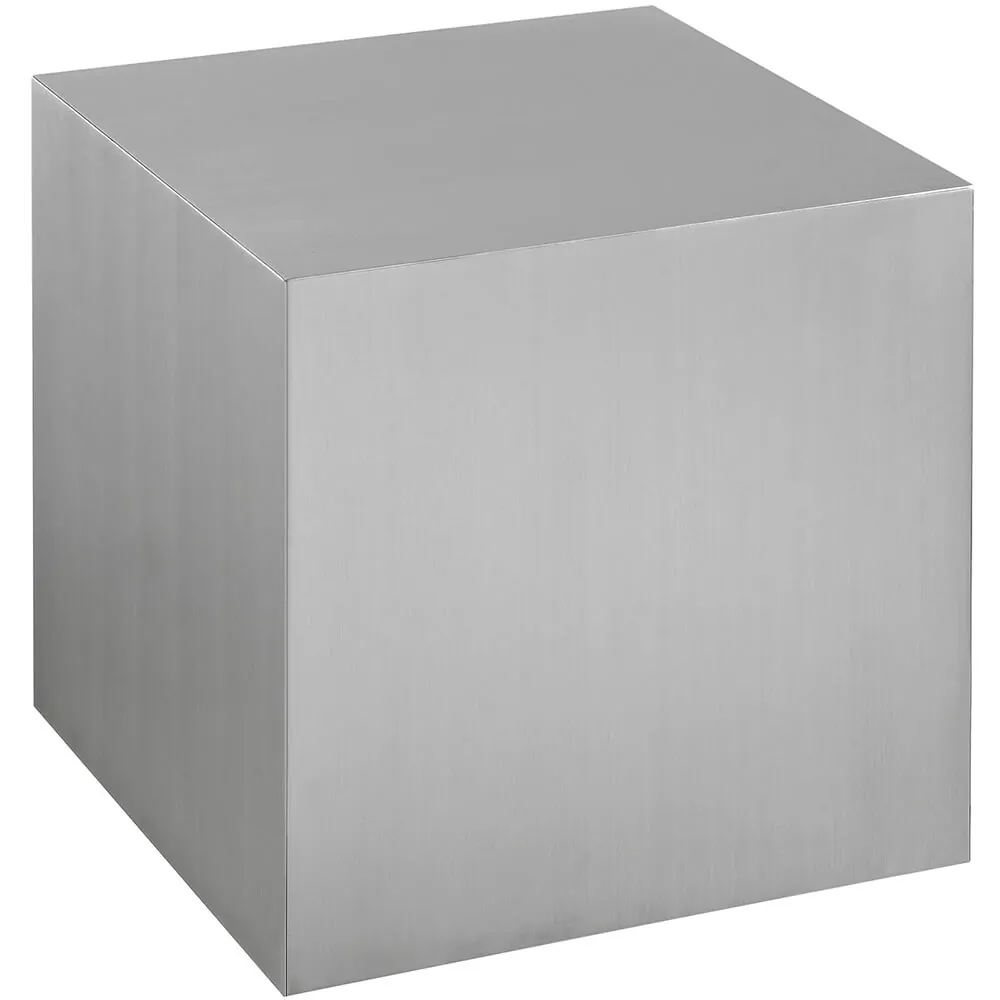 This stainless steel side table is available in a brushed stainless steel finish that displays silver in color.