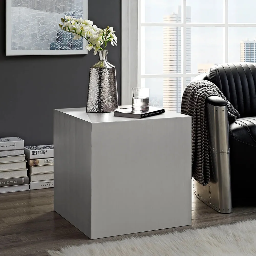 Introducing the stainless steel side table, a modern masterpiece forged from brushed stainless steel sheets. Expertly welded into a seamless cube design, this side table embodies sleek modernity and craftsmanship.