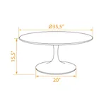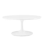 The table's iconic mid-century silhouette is complemented by a sleek, tapered metal pedestal base, offering both style and stability. Elevate your office or living area with this elegant and functional white round coffee table modern specimen, designed to bring a touch of sophistication to any setting.