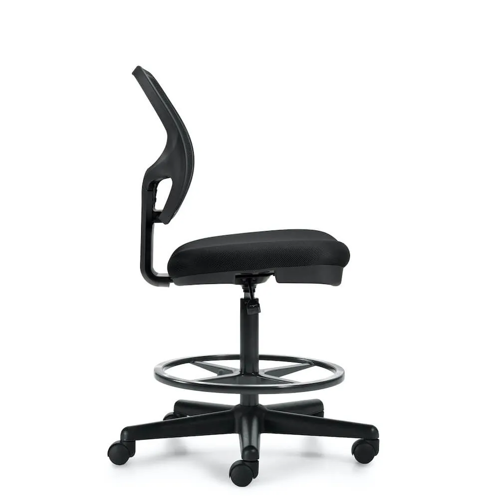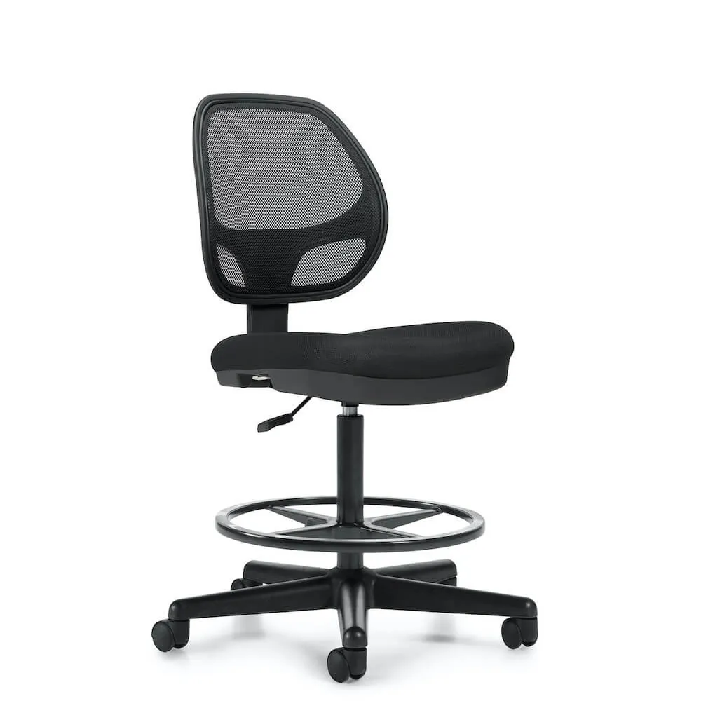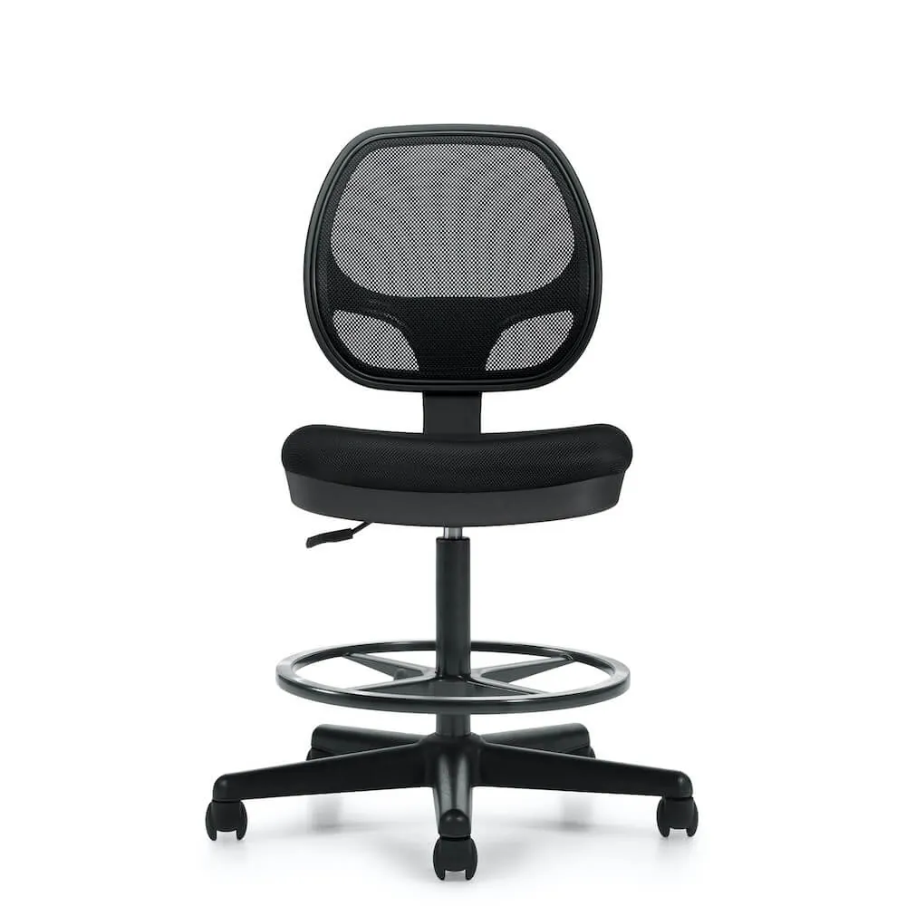 The ergonomic office stool is a great match to any office reception desk or designer office desk. This comfortable mesh drafting chair provides support that follows the natural curvature of the spine, featuring wide and cushioned seating for optimal comfort.