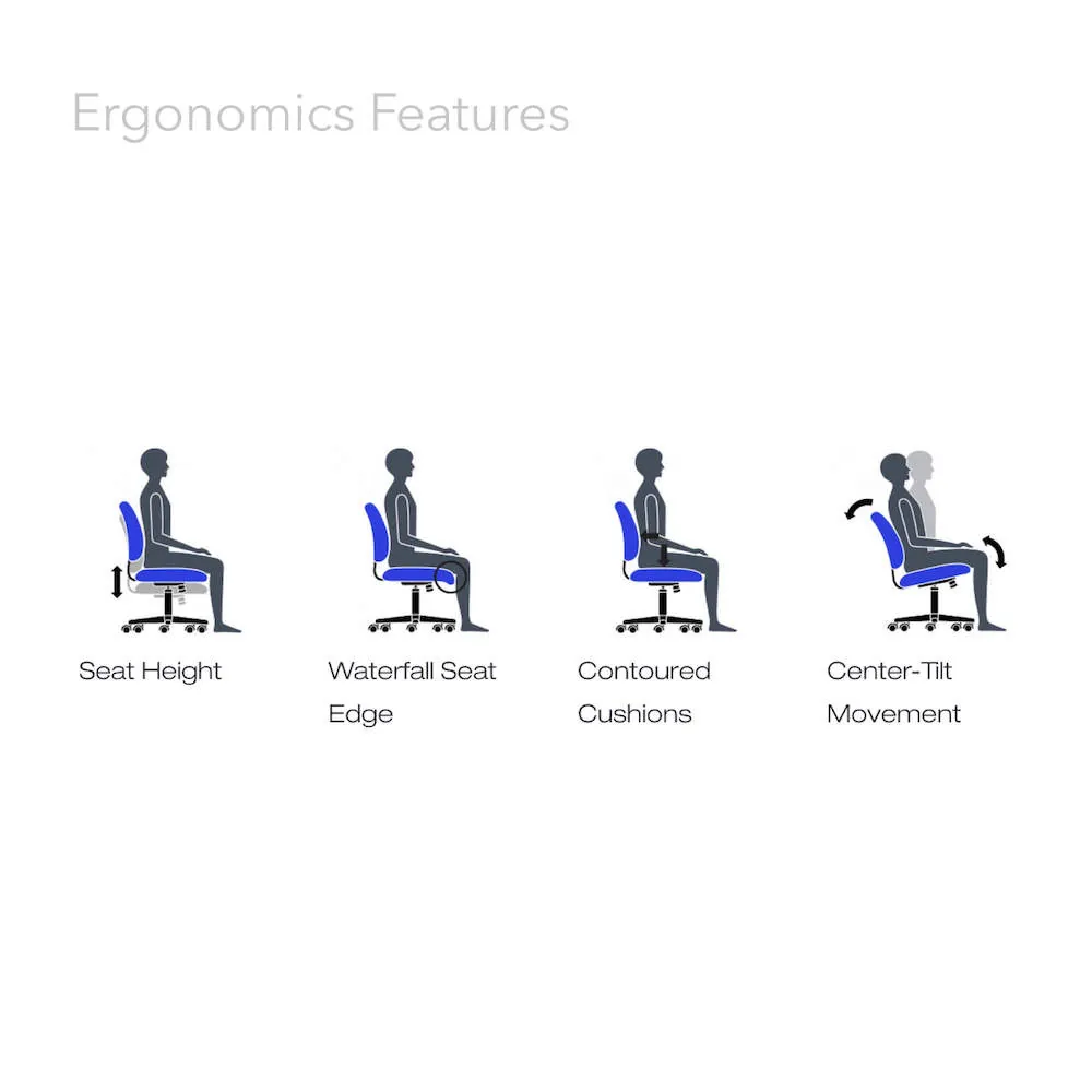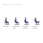 The ergonomic office stool is equipped with features that provide optimal comfort and functionality, including the following elements: