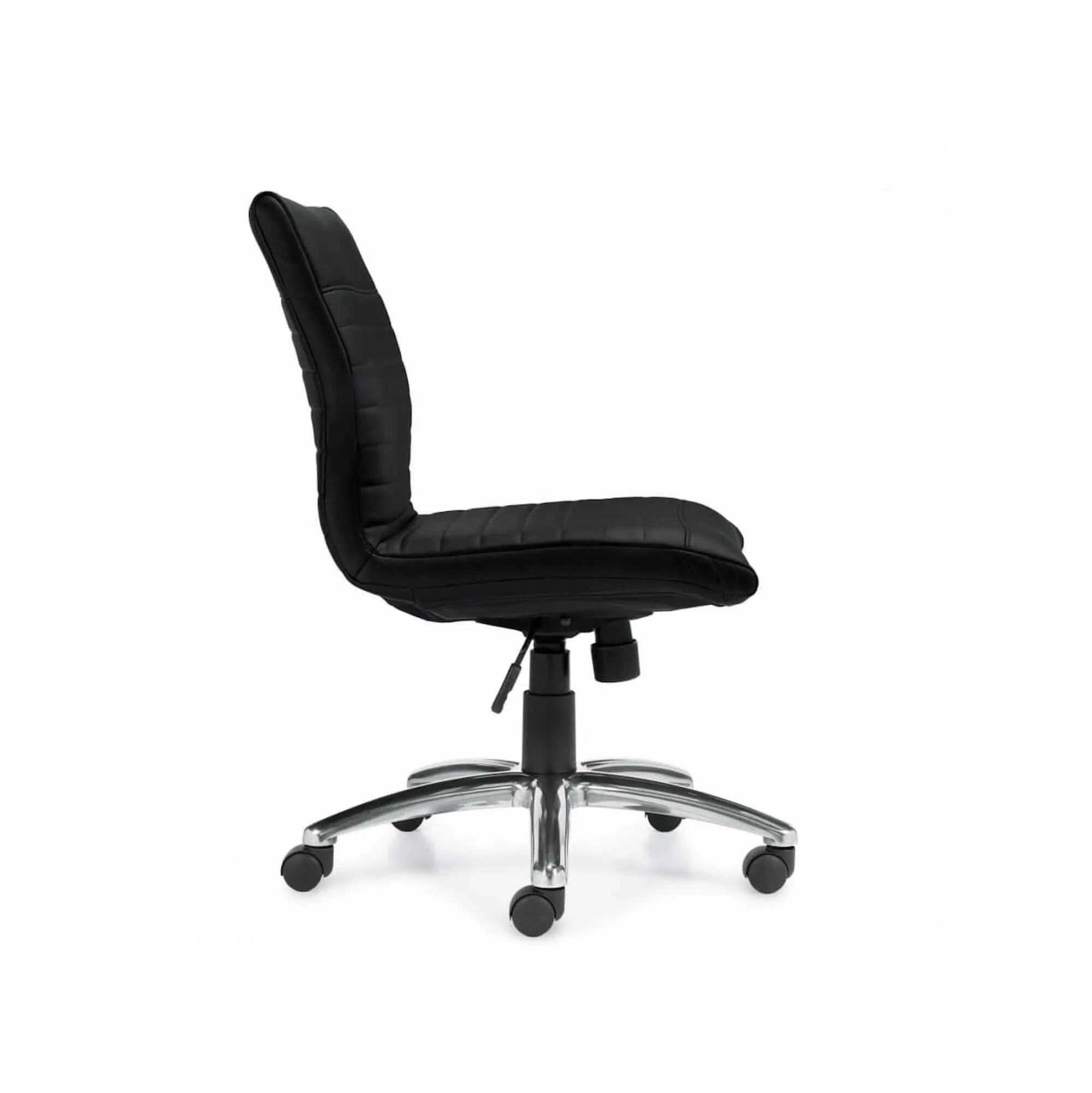 Our low back leather office chair ia a sleek and modern chair designed, with ergonomic principles in mind. Constructed with cushioned back, seat and passive lumbar support this chair follows the natural curve of the spine, providing versatility, comfort and modernity to any functional office space.