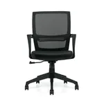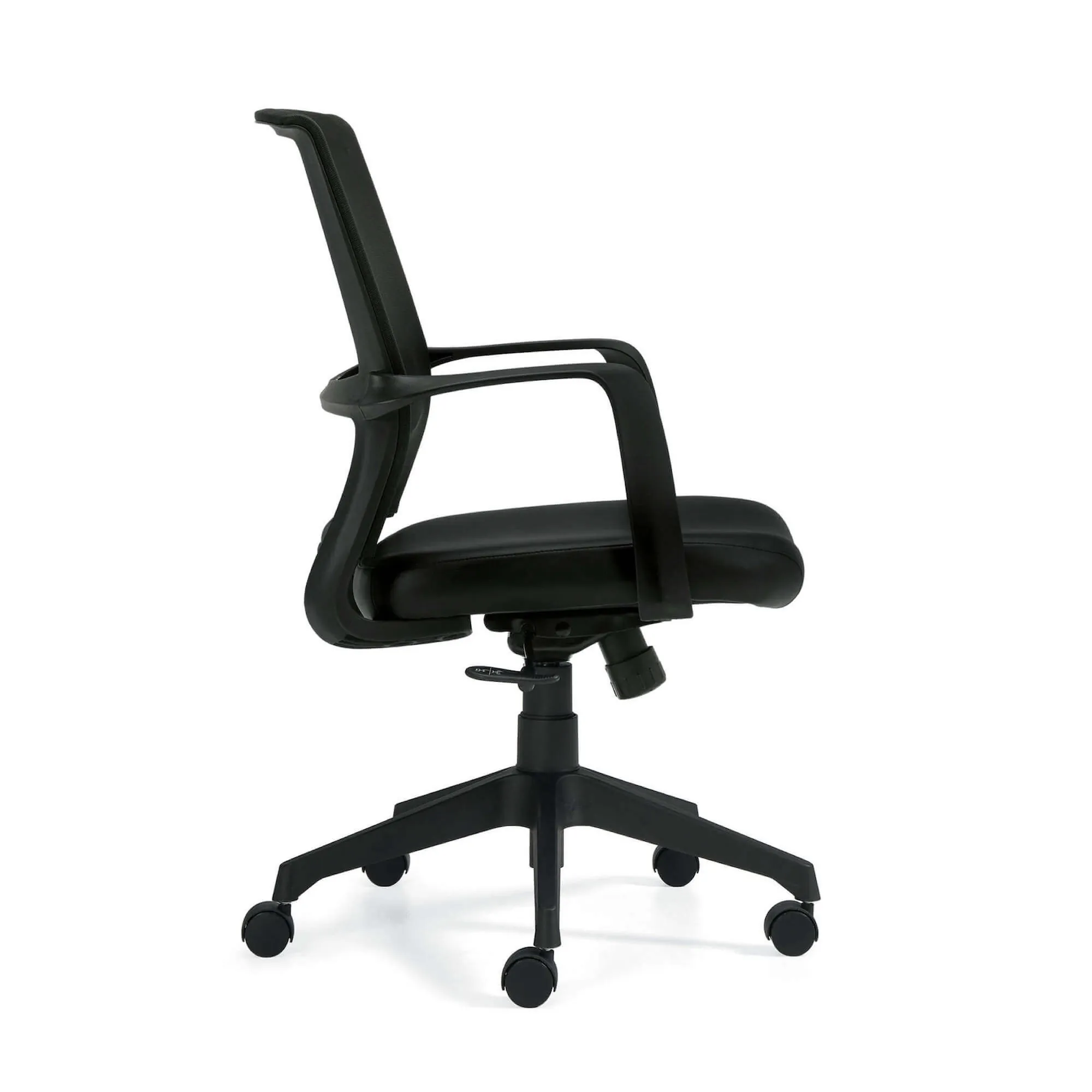 Our low back office chair with arms is a stylish adtion to any workspace design. With angular lines on the back and armrest structure this mid back office chair provides optimal support for the spine's natural curve, promoting good posture during extended periods of seating. Whether as part of a workspace setup or incorporated into office desking, this chair offers versatiliy and functionality.