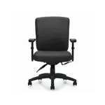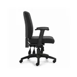 This multi functional chair features a sleek black upholstery for both the back and seat, complemented by a sturdy black structure, base, arms and wheels. With its robust and neutral color scheme, it seamlessly blends into any workstation style.