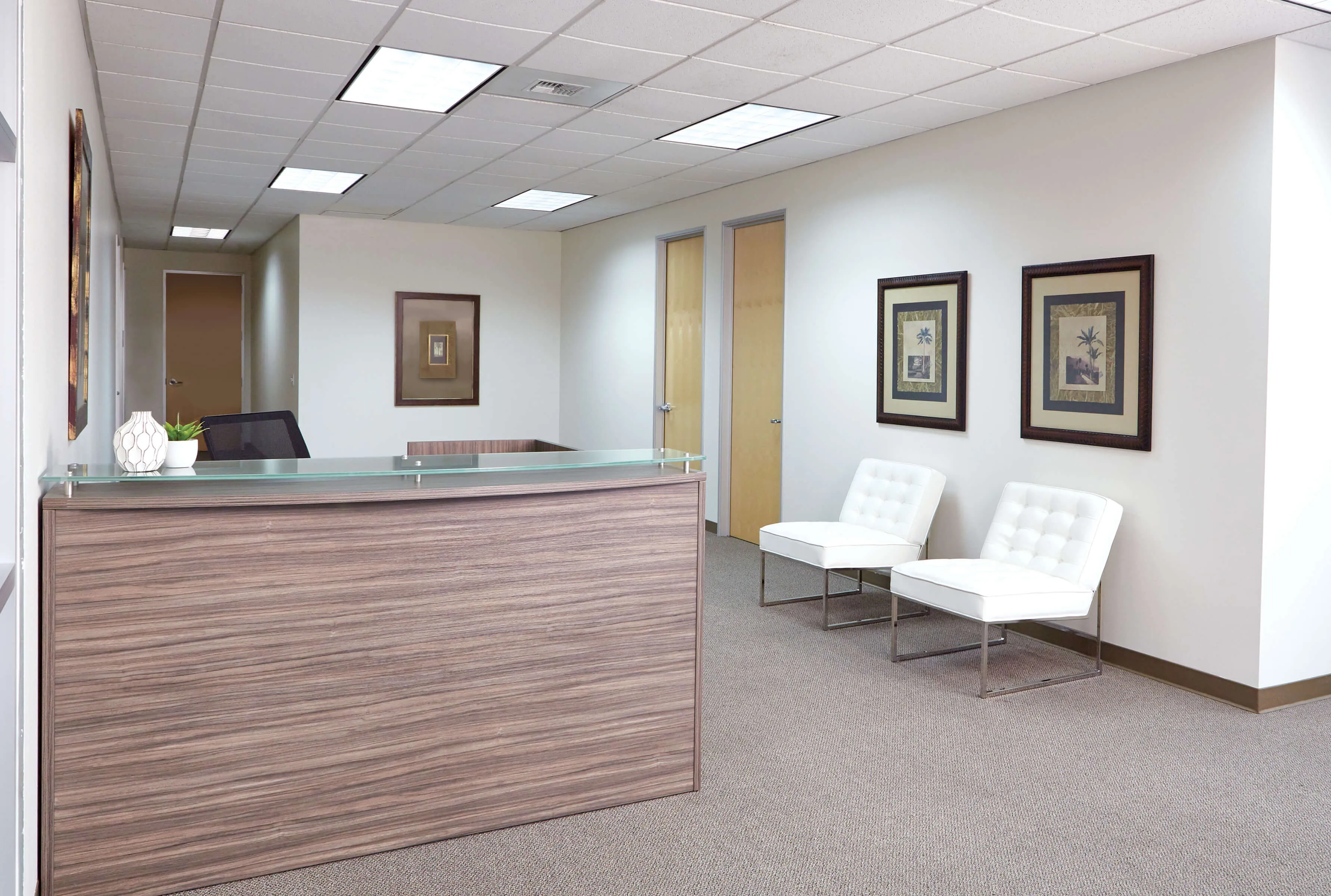 3 grommets in top surfaces space of the reception desk.