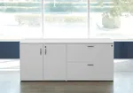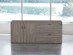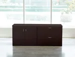 The modern storage cabinet offers a sleek and practical solution for storage needs. Its innovative design integrates a file cabinet on one side with a single shelf, and on the other side, two drawers. This combination of functionalities makes it a highly versatile and efficient piece suitable for any workplace or personal office setting.