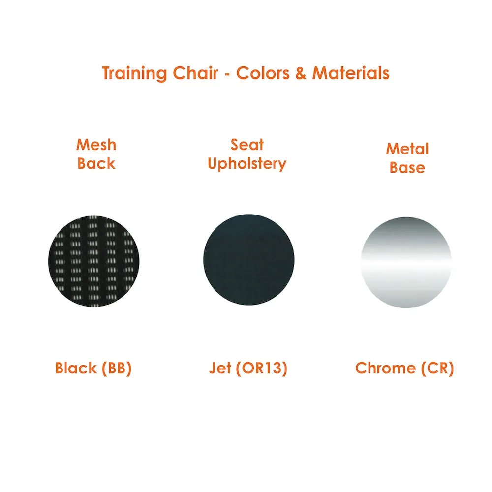 • Training Chair: Black Vinyl & Mesh. Chrome base.