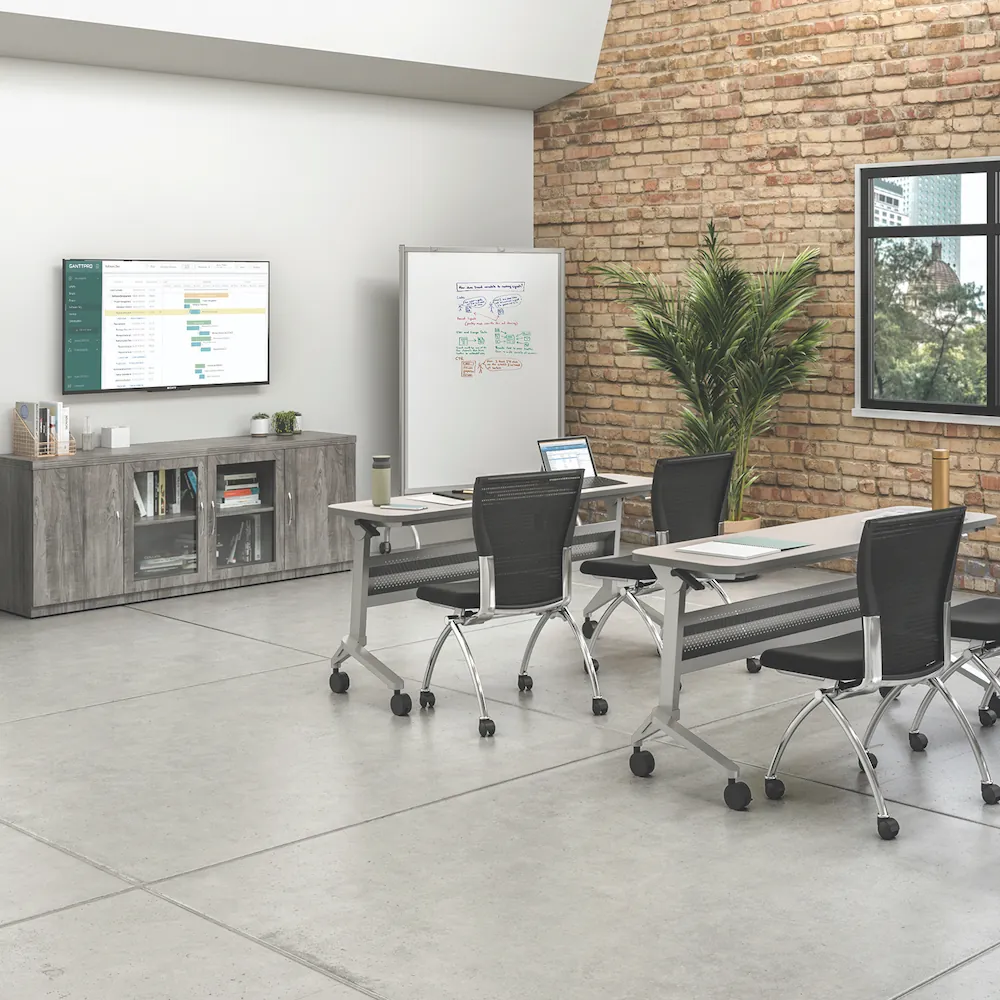 Training Room Furniture is a great option to bring to the spaces for training in your office. The included educational and conference room table, features a practical design and easy mobility. The training chair the perfect choice to accompany, with a super helpful flip up mode and reclining for an optimal benefit for storage them also to bring comfort to the users.