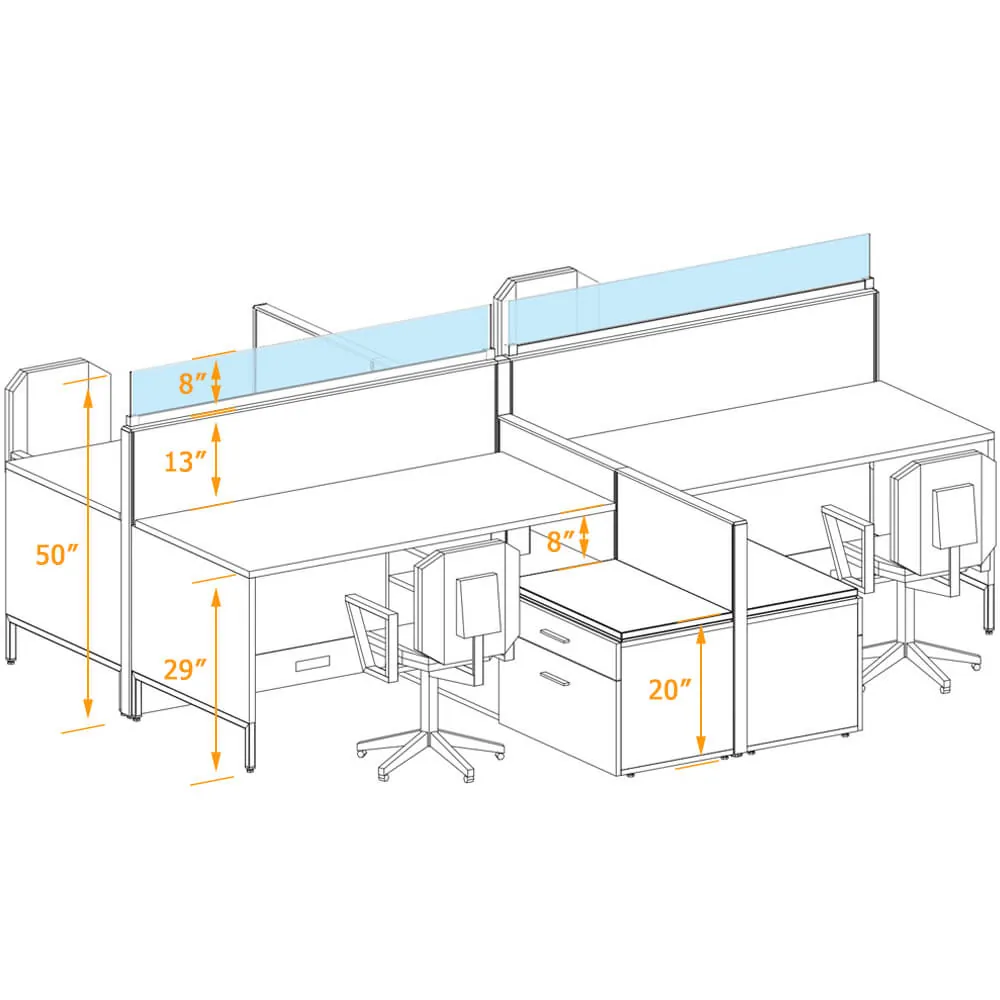 Revolutionize your office environment with our cutting-edge Modern Cubicles Square Quad 122 unit. Crafted to enhance productivity and aesthetics simultaneously, this innovative workstation is a game-changer.
