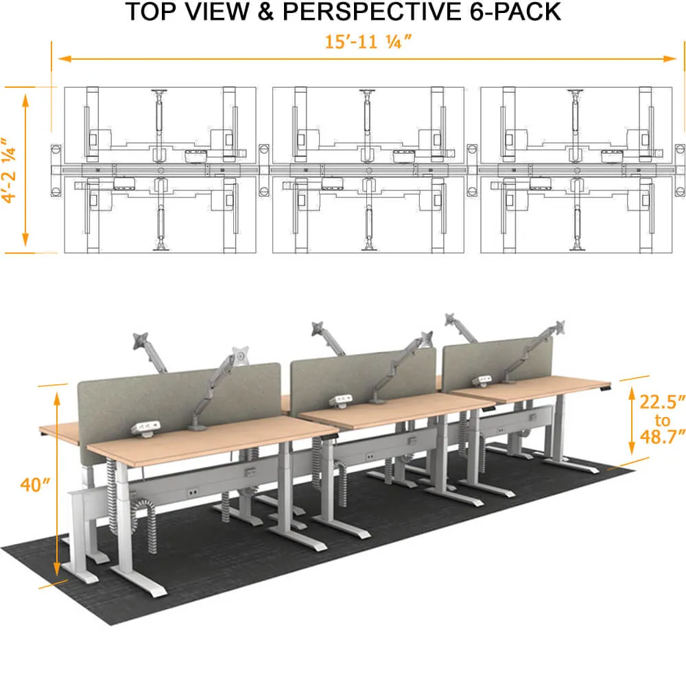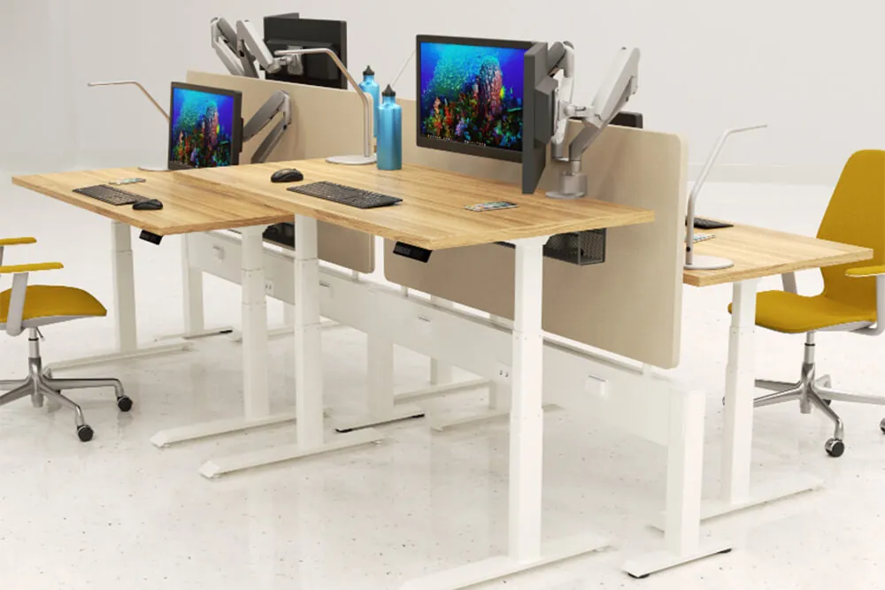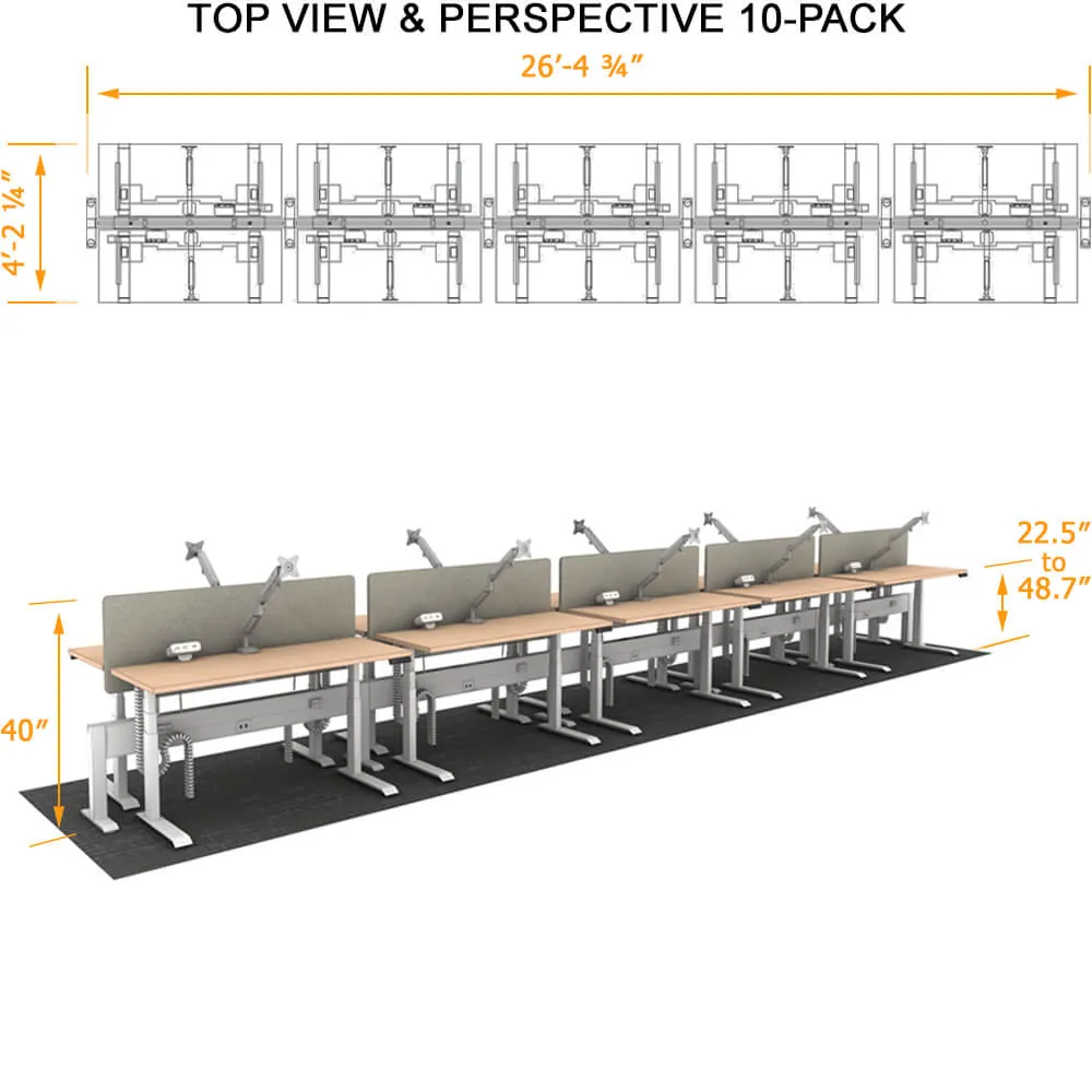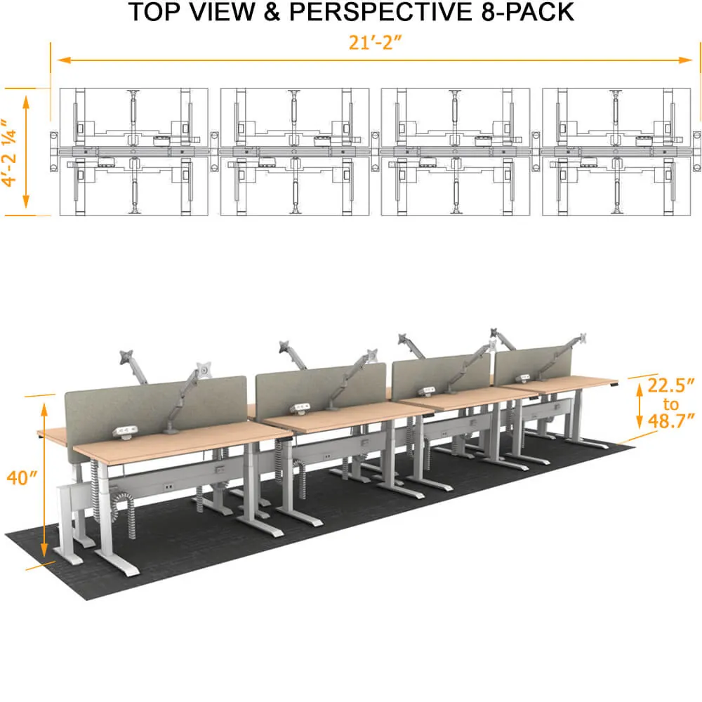 Height adjustable desks from 22.5” to 48.7”, with programmable switch.