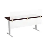 This sit stand desk features low pressure laminate surface with 3mm PVC edge and legs with metallic silver finish. The privacy and modesty panels are made of frosted acrylic. The work surface is available in five colors: Light Grey, White, Cherry, Mahogany and Espresso.