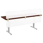 This sit stand desk features low pressure laminate surface with 3mm PVC edge and legs with metallic silver finish. The privacy and modesty panels are made of frosted acrylic. The work surface is available in five colors: Light Grey, White, Cherry, Mahogany and Espresso.