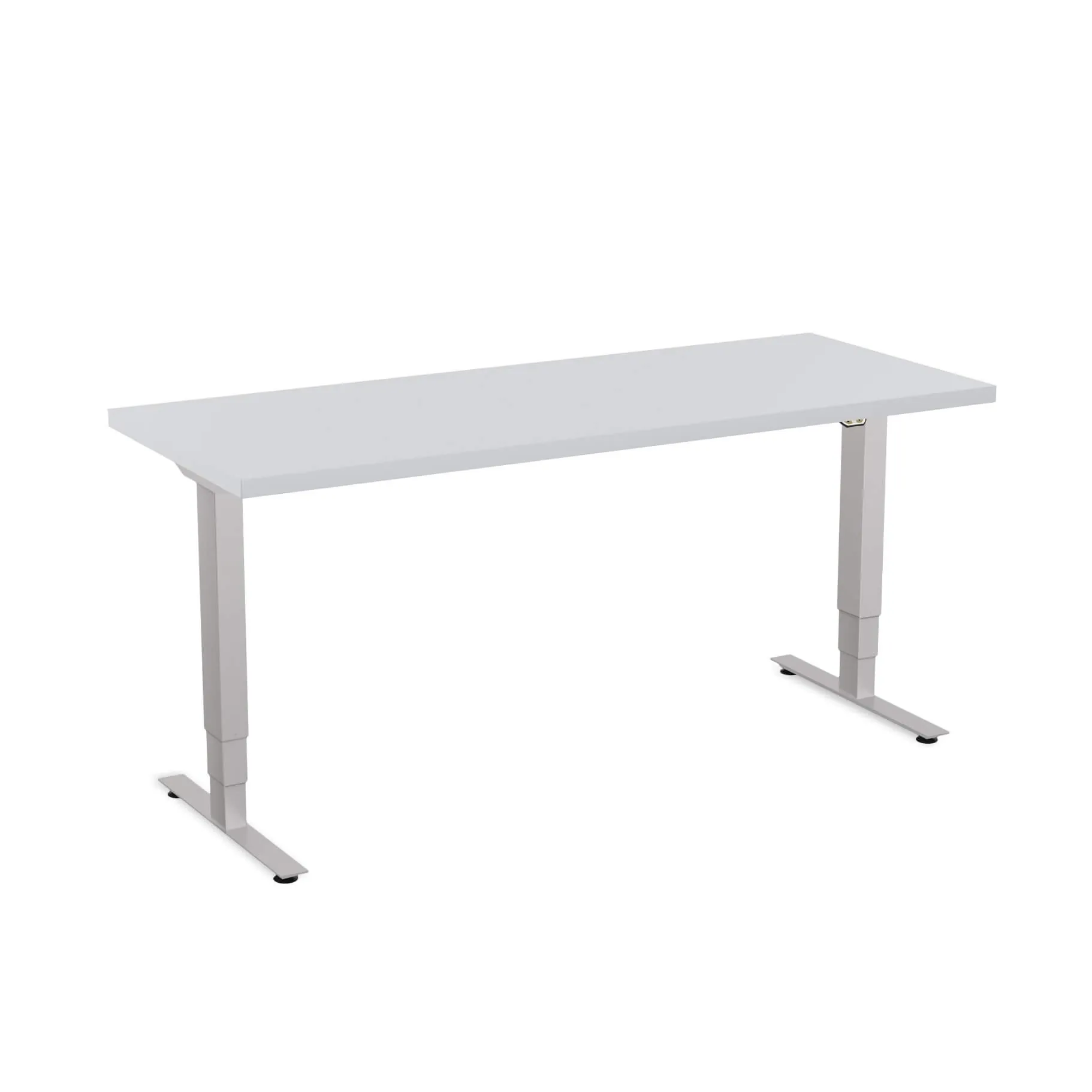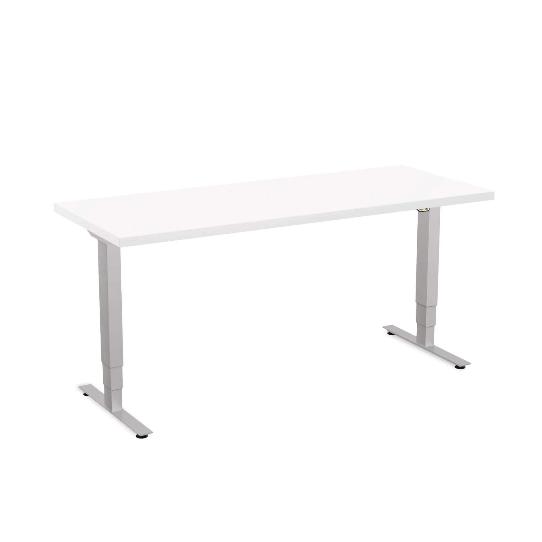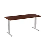 This sit stand desk features low pressure laminate surface with 3mm PVC edge and legs in a metallic silver finish. The work surface is available in five colors: Light Grey, White, Cherry, Mahogany and Espresso.