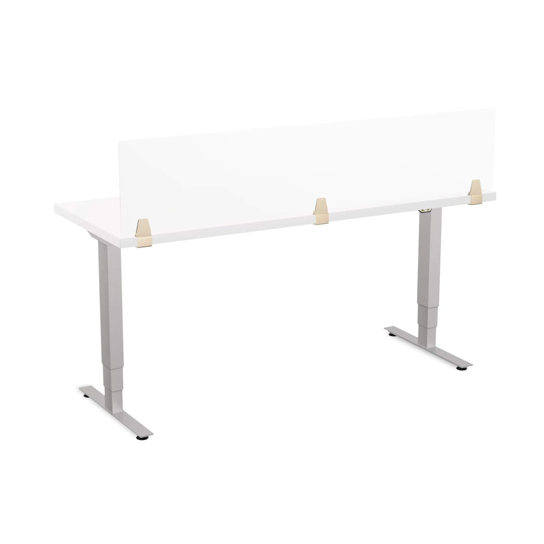 This automatic sit stand desk comes with nifty extra features. A clamp-on power/data module lets you conveniently plug in your devices right on the table top. A desktop privacy screen spans across the width of the desk. The acrylic material of the screen is lightweight and doesn’t have the same fragility as glass, and the sophisticated frosted effect provides sufficient privacy to shield the items you choose to keep on your height adjustable work table. The simple up-down control buttons are easy to use and will adapt to any height within range of the adjustable legs.