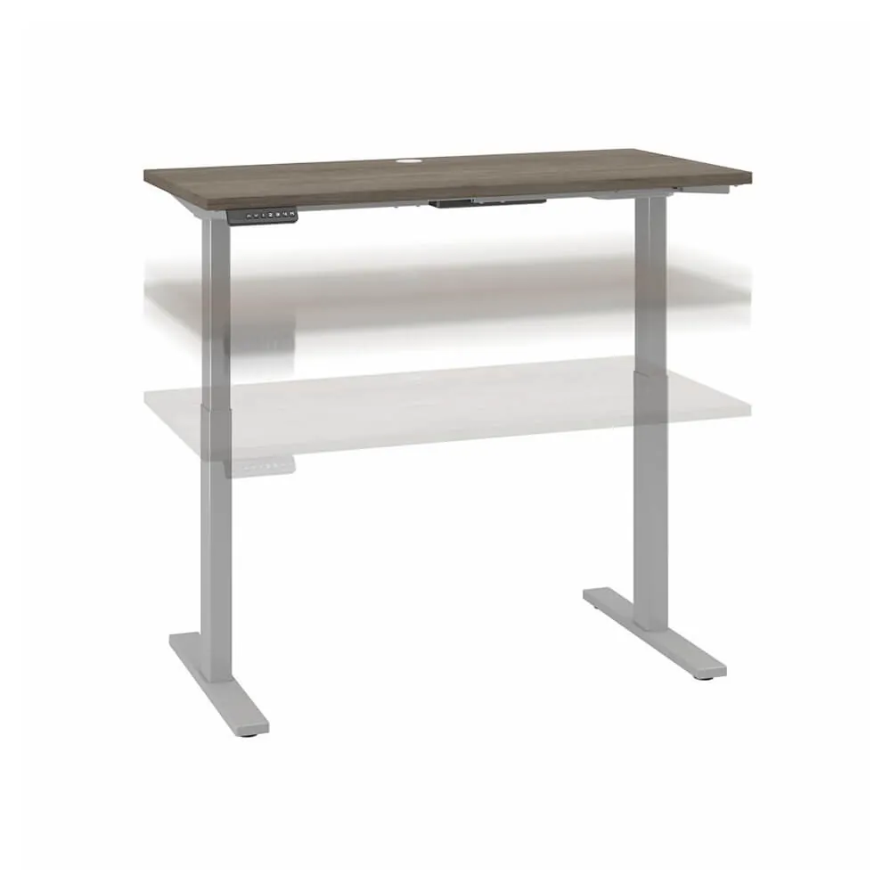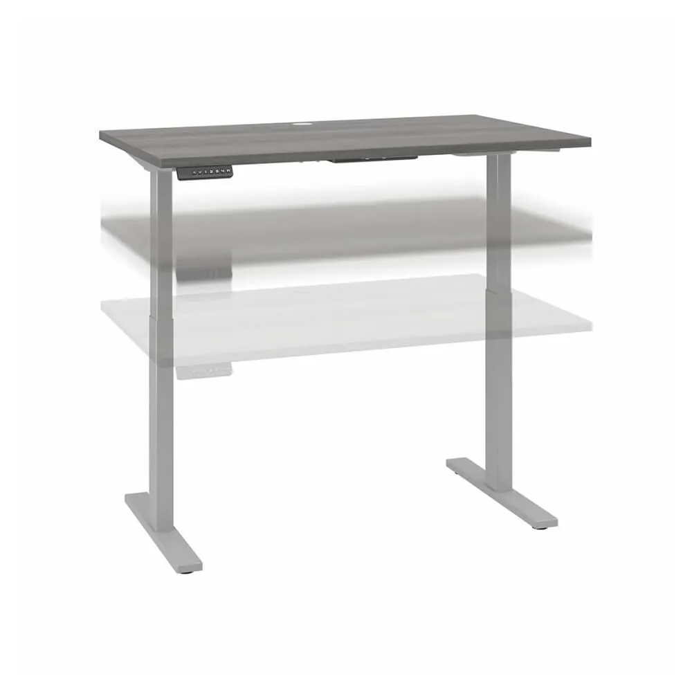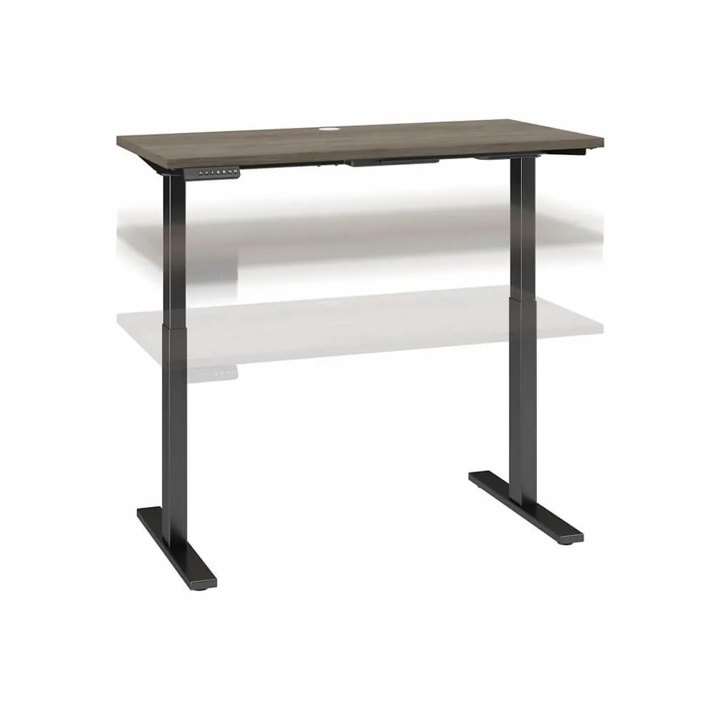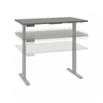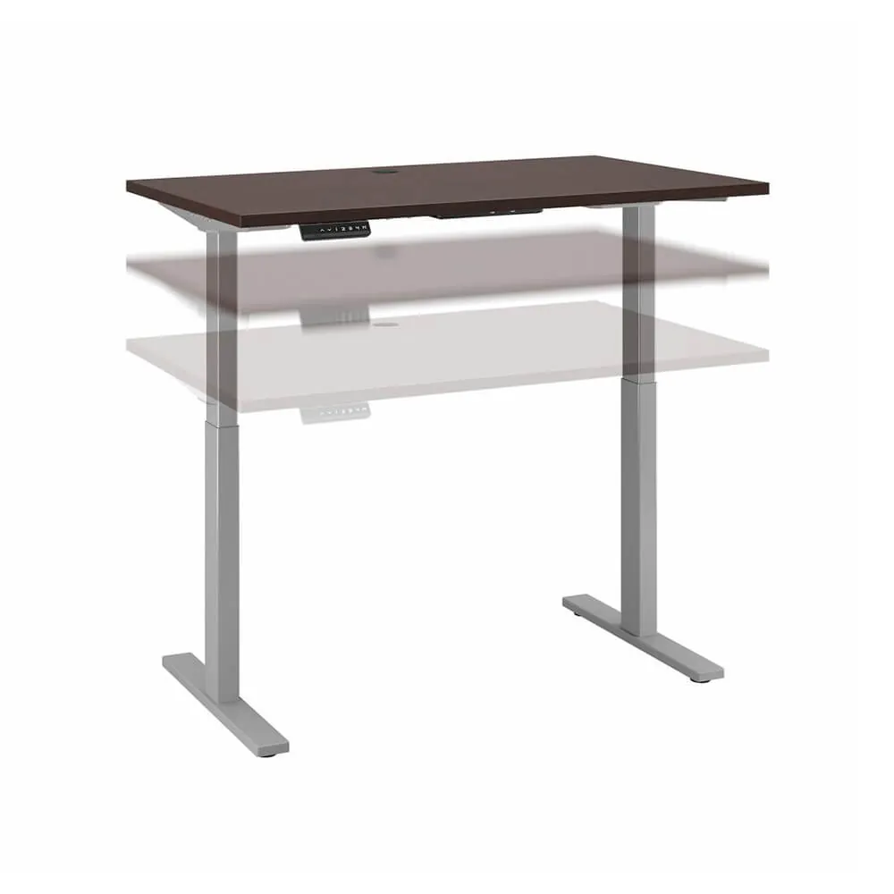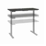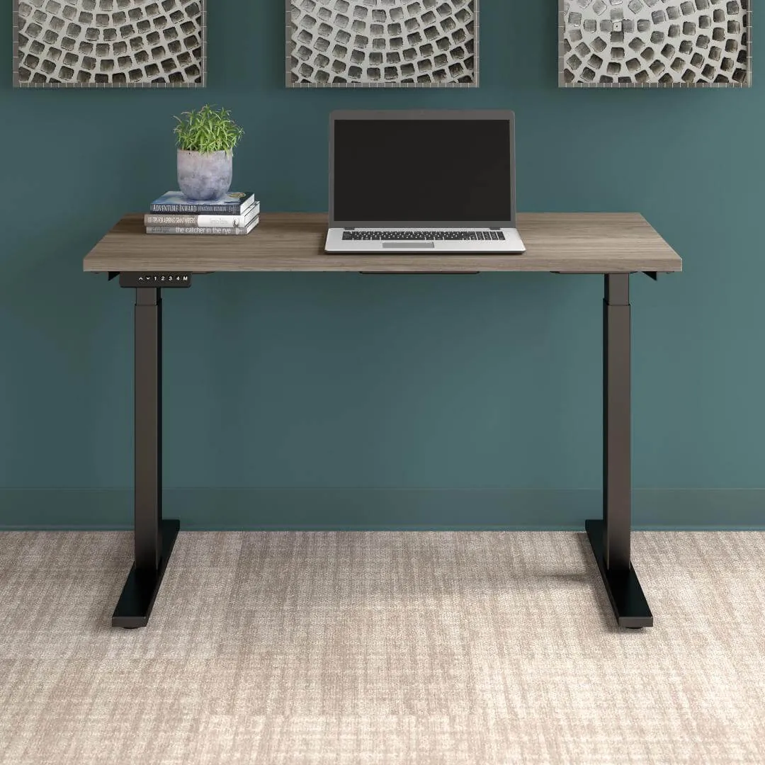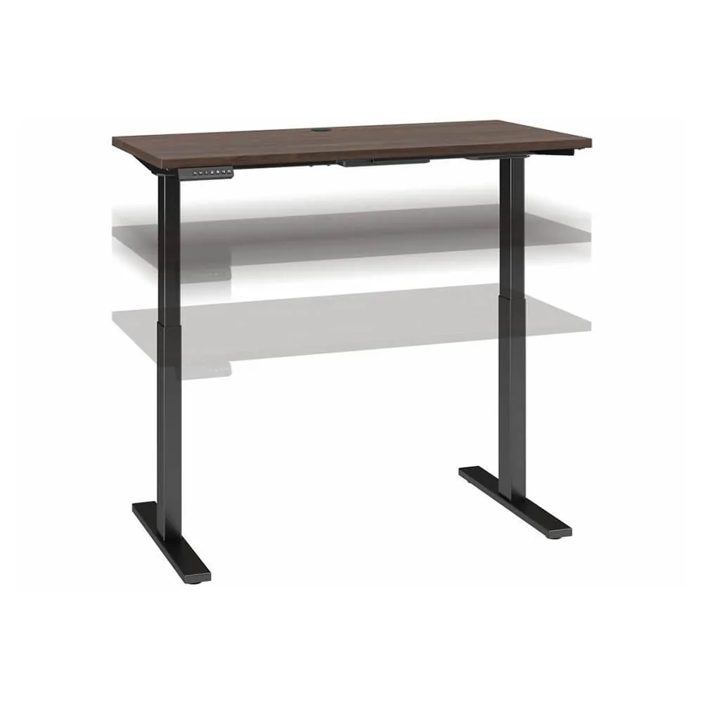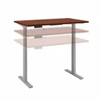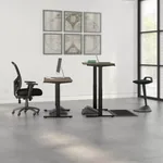 This sit stand desk features a durable scratch and stain resistant thermally fused laminate work surface with impact resistant edges. The work surface is available in 7 colors: Black Walnut, Hansen Cherry, Modern Hickory, Mocha Cherry, Platinum Gray, Storm Gray and White. The legs are made of 16-gauge steel that provides superb structural strength and they are available in either a Black or Gray Metallic finish.
