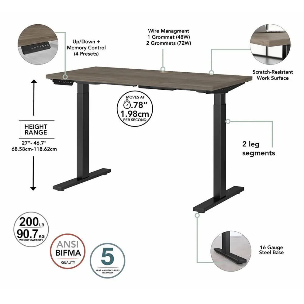 These sit stand desks are guaranteed to be free from defects in material and workmanship, and backed by a 5 year limited warranty. These sit stand desk meets ANSI/BIFMA standards for durability and safety. Assembled in the USA with domestic and foreign parts. This is high quality, commercial grade business furniture intended for a standard eight hour, single shift work day.