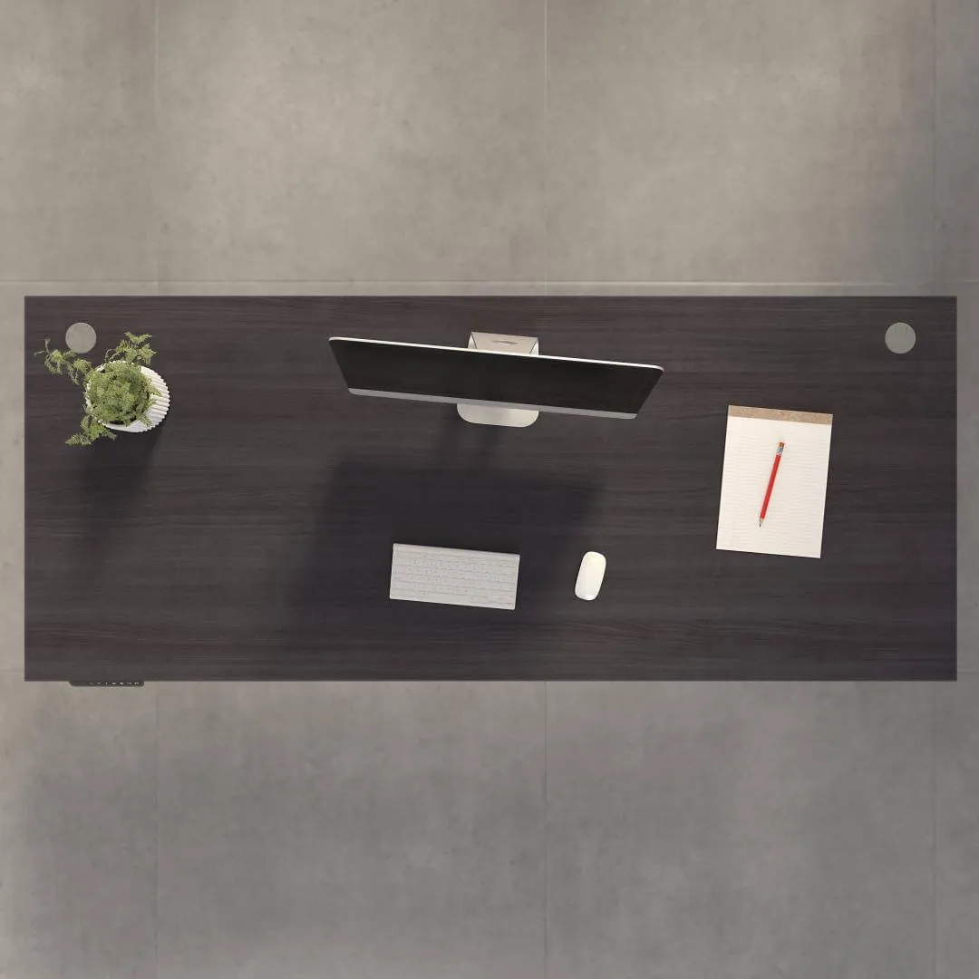 - Height adjustable motorized base top with durable thermal fused laminate work surface