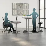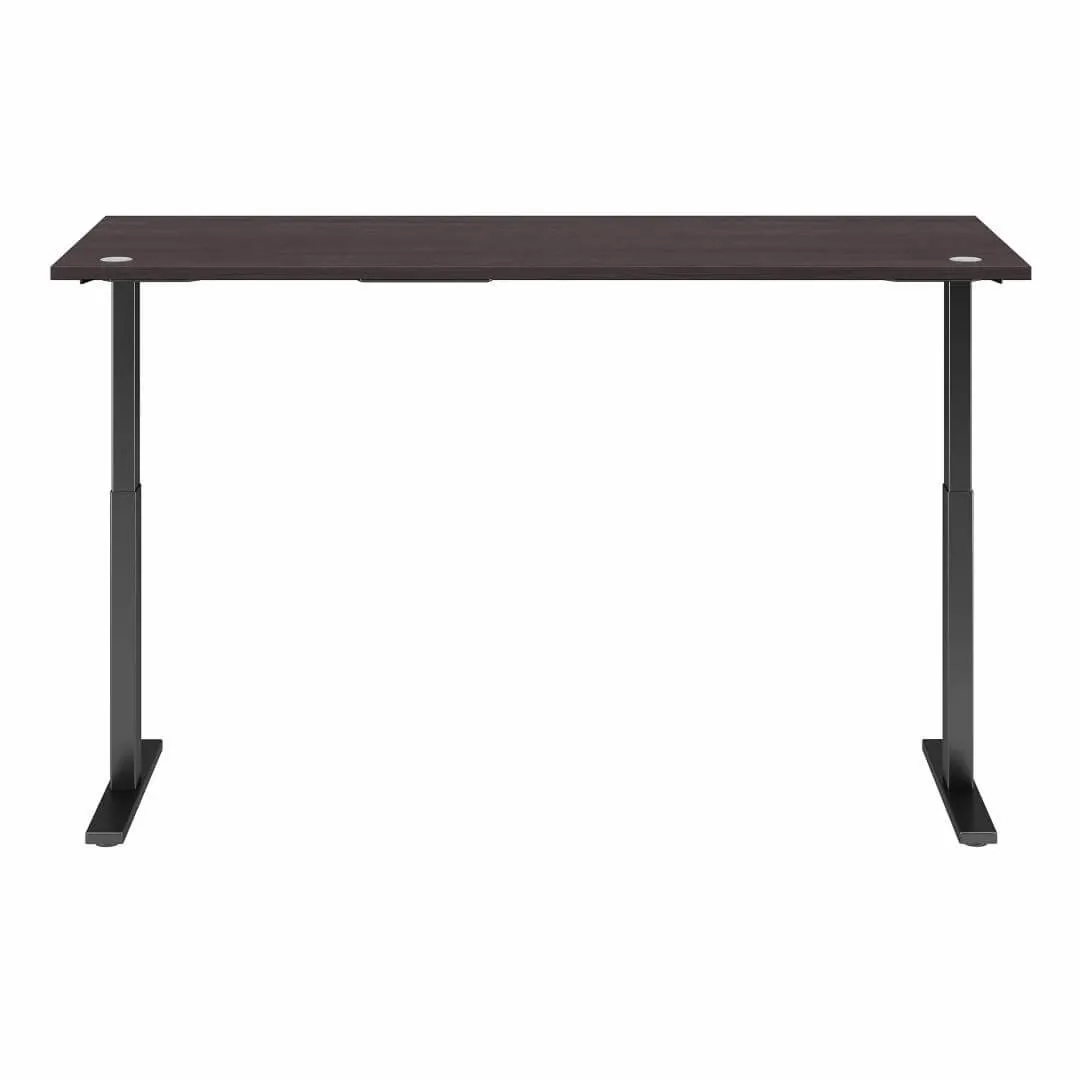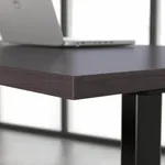 This sit stand desk features a durable scratch and stain resistant thermally fused laminate work surface with impact resistant edges. The work surface is available in 7 colors: Black Walnut, Hansen Cherry, Modern Hickory, Mocha Cherry, Platinum Gray, Storm Gray and White. The legs are made of 16-gauge steel that provides superb structural strength and they are available in either a Black or Gray Metallic finish.