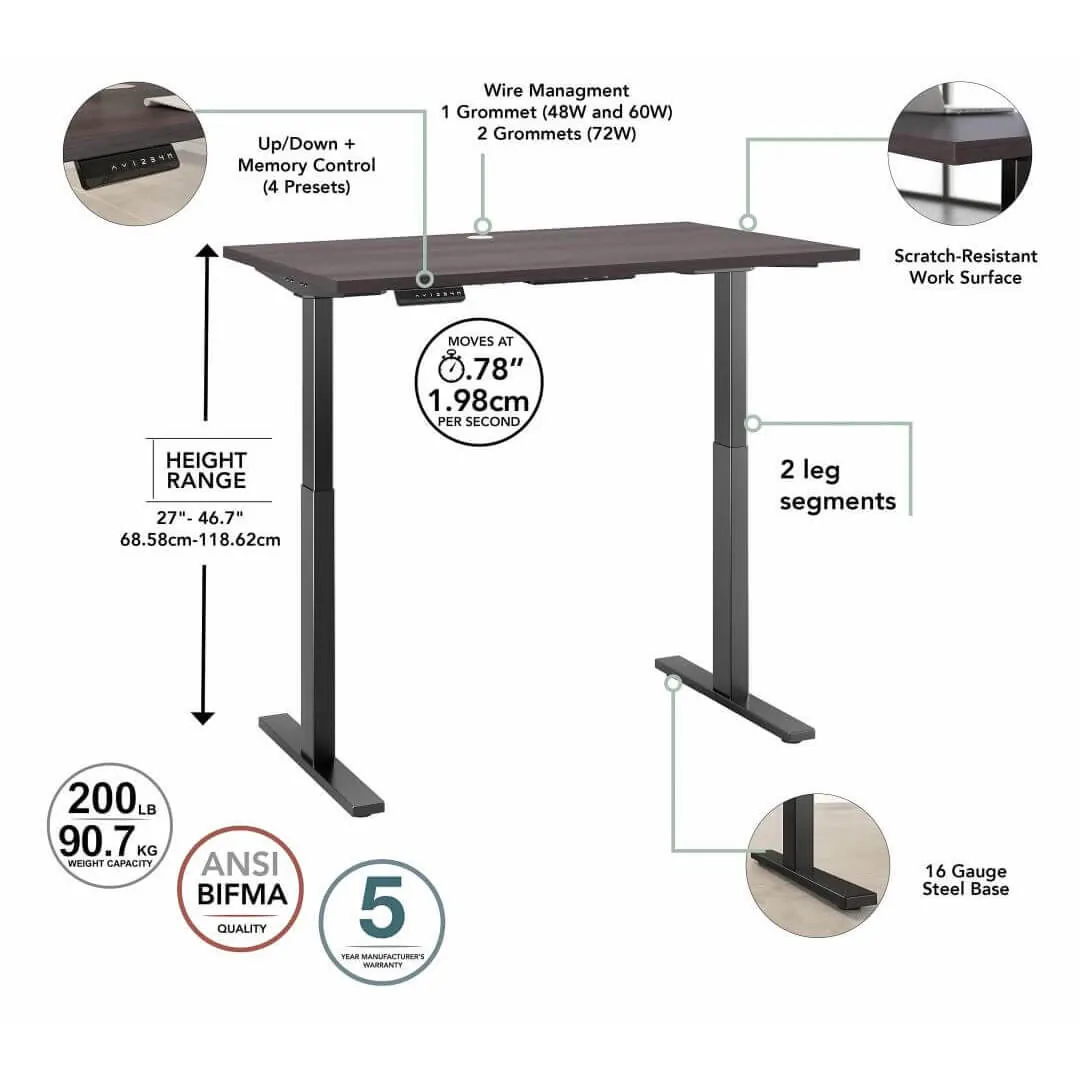These sit stand desks are guaranteed to be free from defects in material and workmanship, and backed by a 5 year limited warranty. These sit stand desk meets ANSI/BIFMA standards for durability and safety. Assembled in the USA with domestic and foreign parts. This is high quality, commercial grade business furniture intended for a standard eight hour, single shift work day.