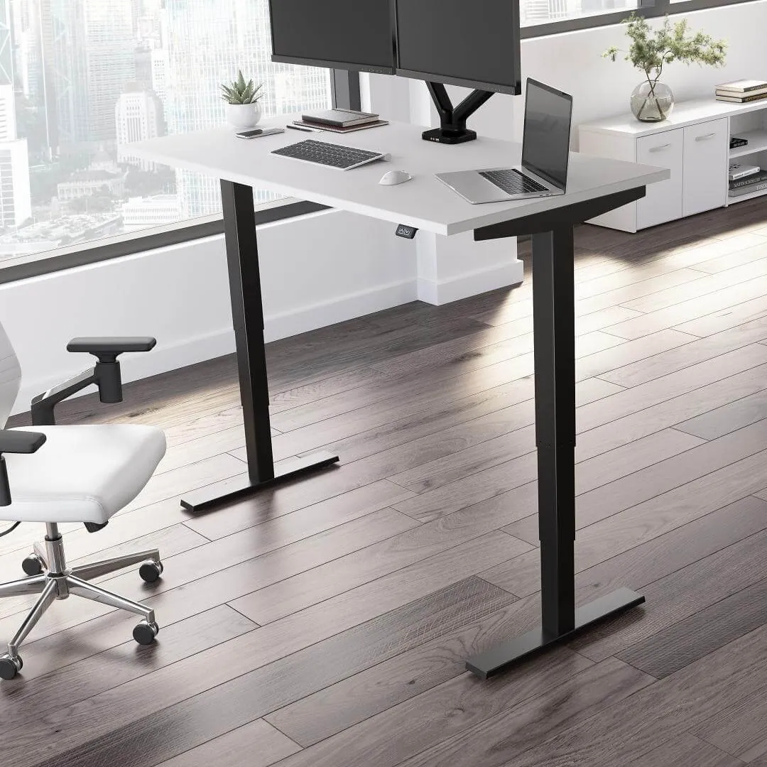 - Height adjustable motorized base top with durable thermal fused laminate work surface