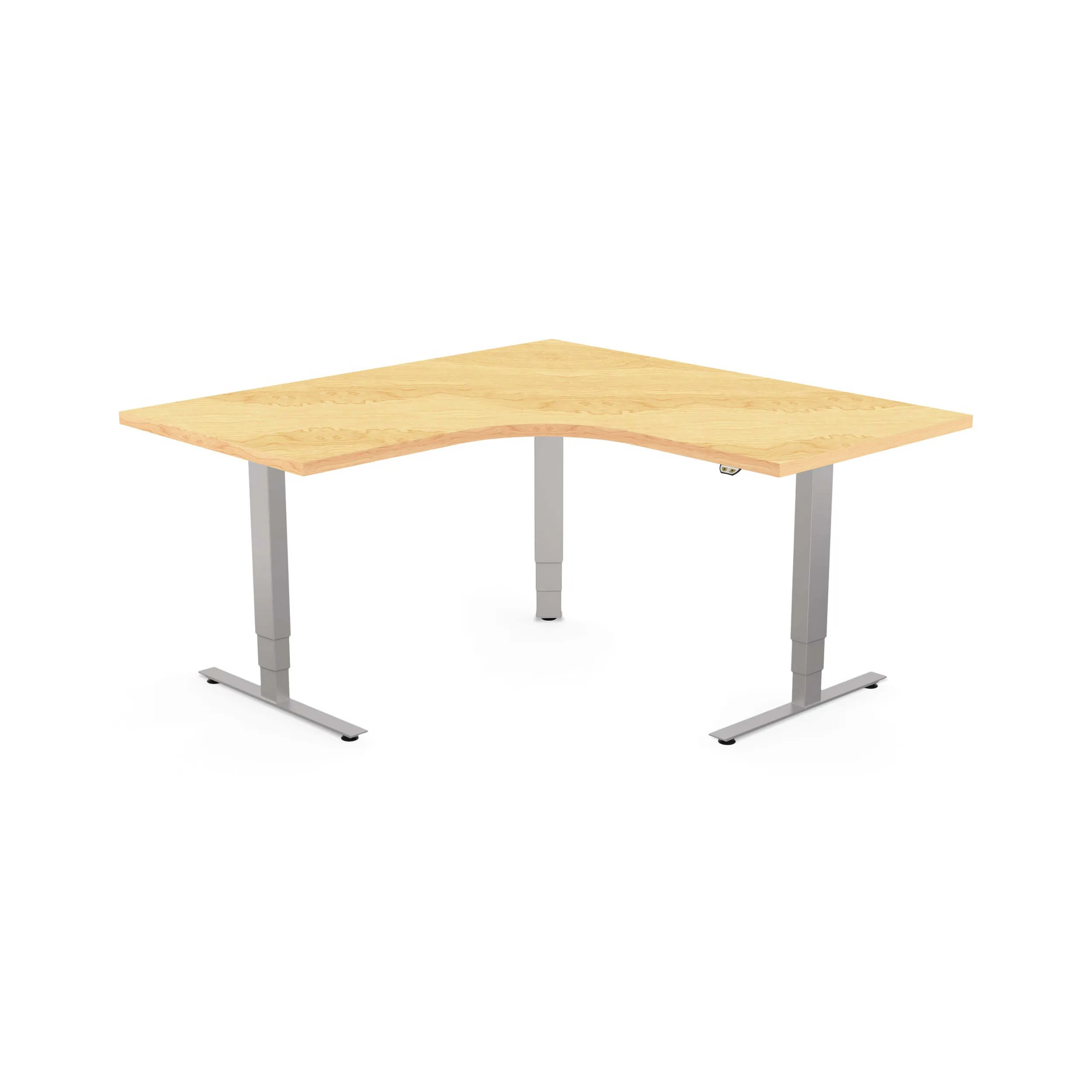 Does your daily work routine involve more devices or equipment than your average office worker? An adjustable height L desk expands your reach and accommodates everything you need with an ample L shaped desktop surface and a clamp-on power module that gives you convenient access to electrical outlets and USB ports at any height you wish to work, from sitting to standing and back again. The sit stand desk corner is the ideal spot to install an ergonomic monitor arm, or two, or three… or even four!
