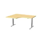 This sit stand desk features T-Legs with metallic silver finish. The laminate work surface has a 3mm Vinyl edge and is available in four colors: Wild Cherry, Kensington Maple, River Cherry and Brazilwood.