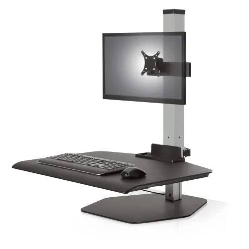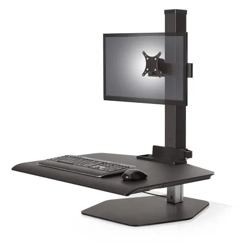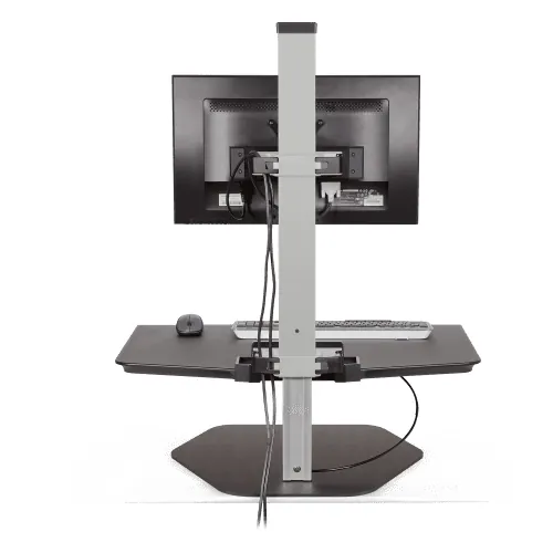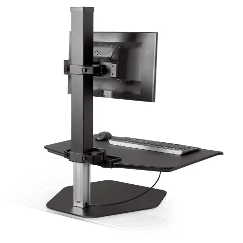 Retrofit your existing desk into a healthy workspace with a freestanding base, using our 1 Monitor Desktop Riser. This sit stand desk converter is a great solution if you want to benefit from sit stand functionality but don’t want to get rid of your existing desk furniture. Relatively lightweight and portable, a desktop riser sits right on top of your desk surface and can raise or lower to your desired position, keeping your computer monitors, keyboard, mouse, and other important accessories right at your fingertips.