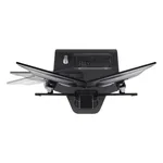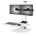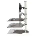 This sit and stand desk riser features durable metal frame and low temperature powder coated MDF worksurface. It is available in three colors: Flat White, Silver or Vista Black color.