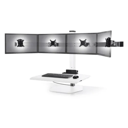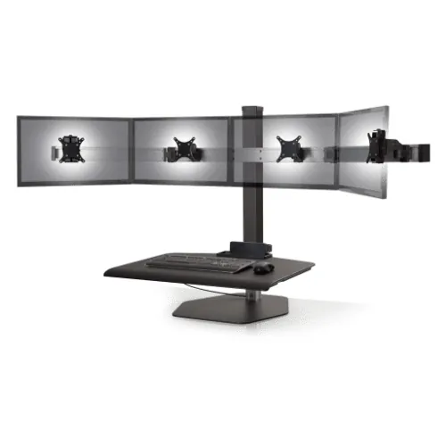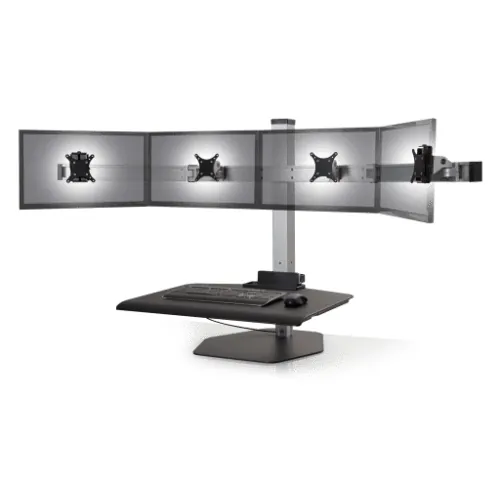 A sit stand desk converter is a great solution if you want to benefit from sit stand functionality but don’t want to get rid of your existing desk furniture. Relatively lightweight and portable, a desktop riser sits right on top of your desk surface and can raise or lower to your desired position, keeping your computer monitors, keyboard, mouse, and other important accessories right at your fingertips.