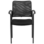 These stackable chairs are upholstered with flexible mesh material. The steel tubular frame is powder coated in Black and the arms are made of nylon. The chairs are available in one color: Black.