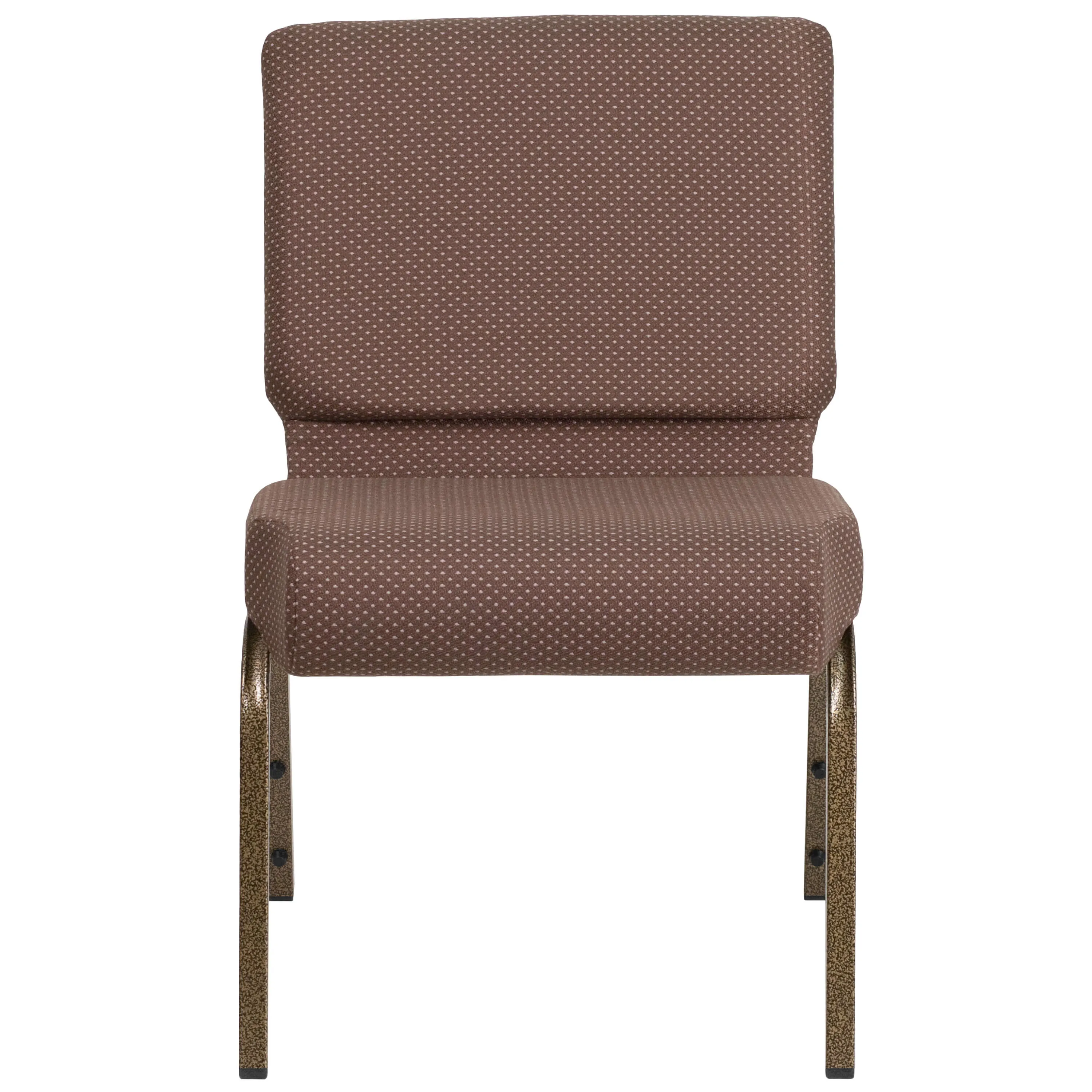 The chair's cushioned back and 4" thick seat are generously padded and covered in durable fabric upholstery. The 21" wide seat has a waterfall edge that reduces pressure on your attendees' legs. Its sturdy 16 gauge steel, gold vein frame, has been tested to hold up to 800 pounds and plastic rocker glides protect your floor by sliding smoothly when you need to move the chair. These Stacking dining chairs come in Brown, Purple,Black and Green.