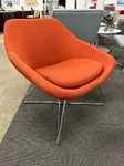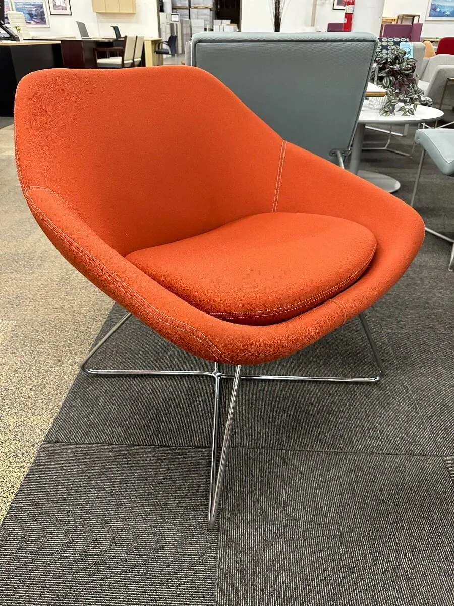 This chair comes an orange fabric upholstered seat and back. 4 star polished chrome base.