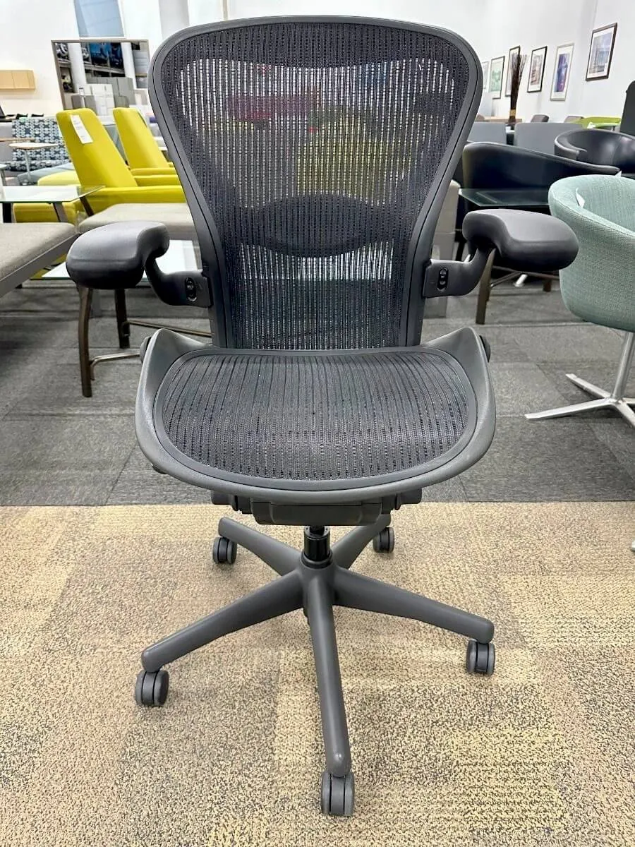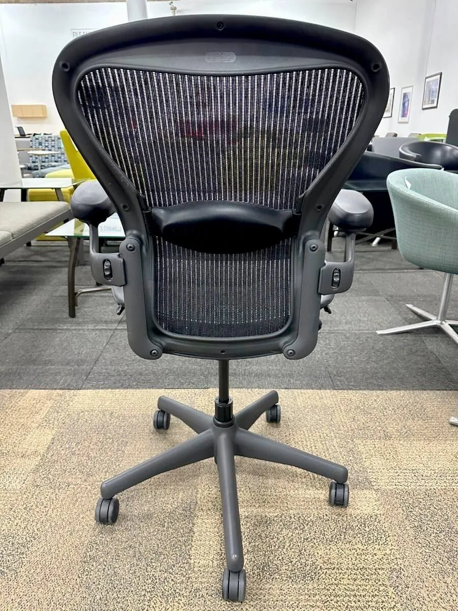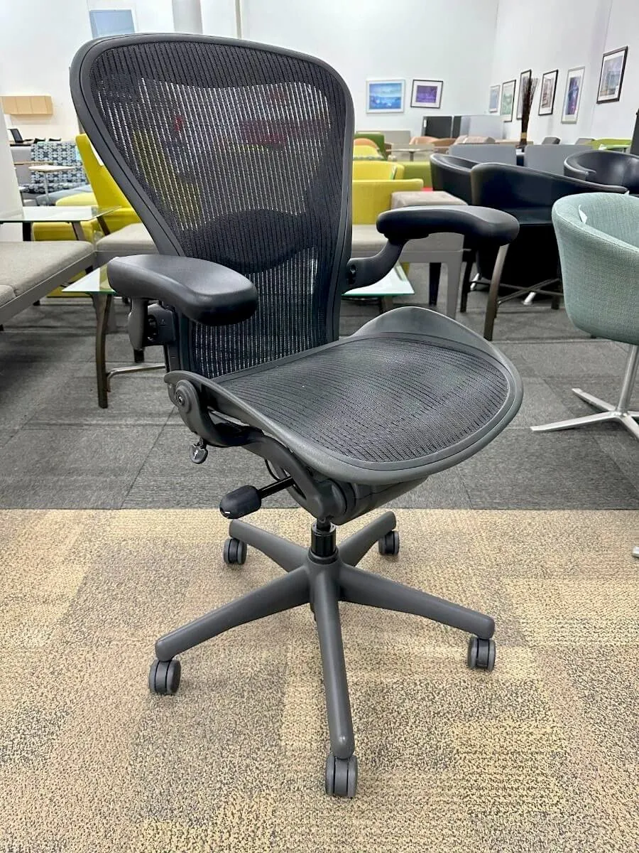 This chair comes full graphite frame and base structure. Carbon (black) mesh back and mesh seating. Black caster wheels.