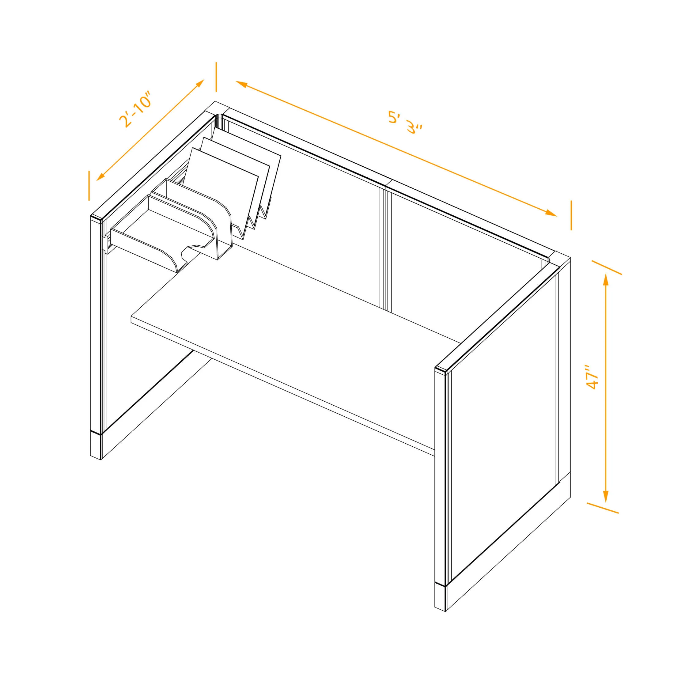 The cubicle comes with 1 office paper management tray, the desk top has a round cable grommet in the corner for wire management. All desk partitions have adjustable floor levelling glides and cable management channels behind each panel’s kick plate cover.