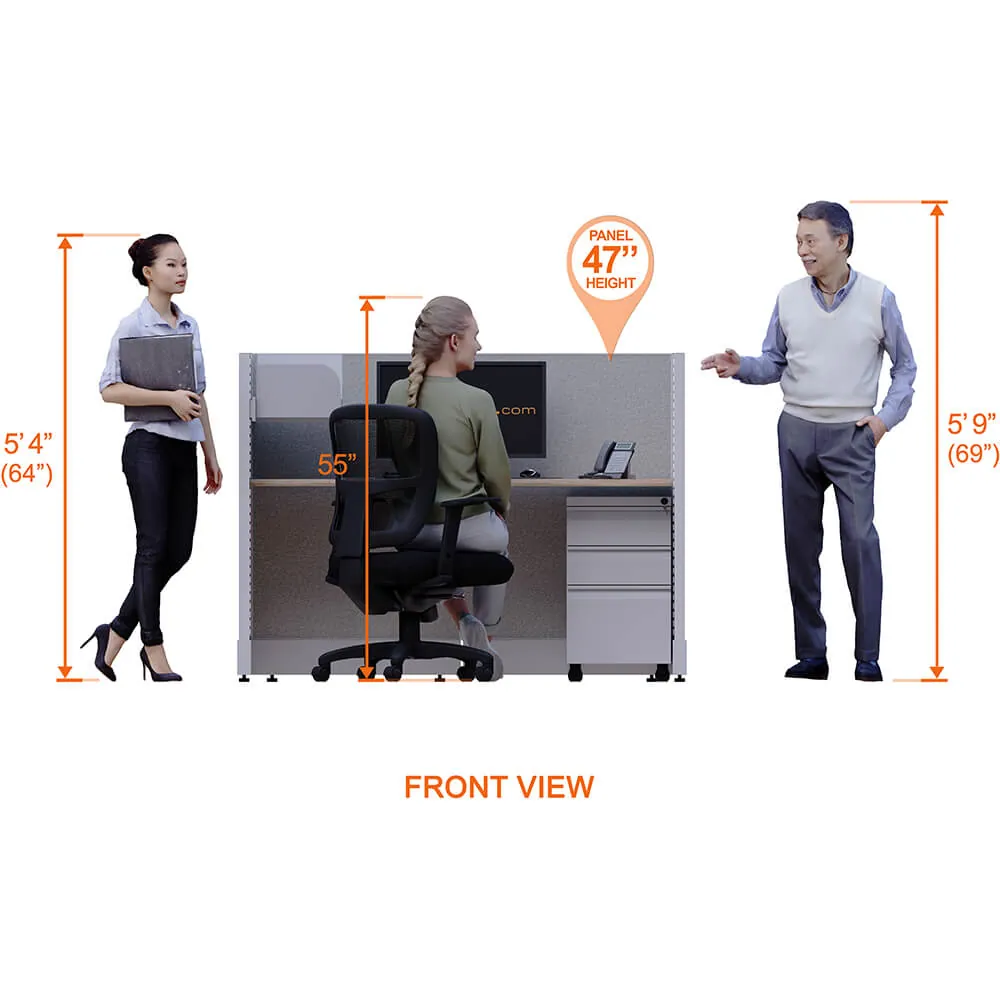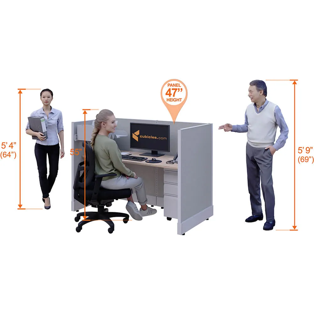 The ideal cubicle furniture should be tasteful, durable, and adaptable. This station from Not so EZ Office Cubicle Desk is all of that and more. The scratch and stain resistant work surface is surrounded on three sides by neutral grey/beige toned panels, giving the user privacy and hiding any desktop clutter. Only 47"H, the panels are well suited for open office workflows, as the users can still work eye to eye. Choose from 7 In-Stock typicals (with or without a filing pedestal) to build your own custom layout.