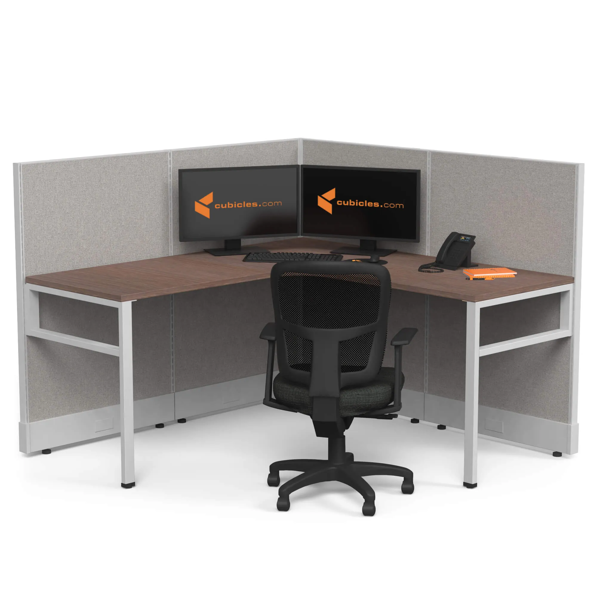The ideal cubicle furniture should be tasteful, durable, and adaptable. This station from Not so EZ Office Cubicle Desk is all of that and more. The scratch and stain resistant work surface is surrounded on two sides by neutral grey/beige toned panels, giving the user privacy and hiding any desktop clutter. Only 45"H, the panels are well suited for open office workflows, as the users can still work eye to eye. Choose from 7 In-Stock typicals (with or without a filing pedestal) to build your own custom layout.